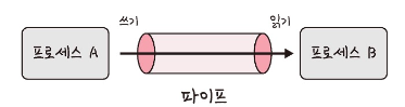 - 익명 파이프 : 프로세스간에 FIFO 방식으로 읽히는 임시 공간인 파이프를 기반으로 데이터를 주고받으며, 단방향 방식의 읽기 전용, 쓰기 전용 파이프를 만들어서 작동하는 방식을 말합니다.