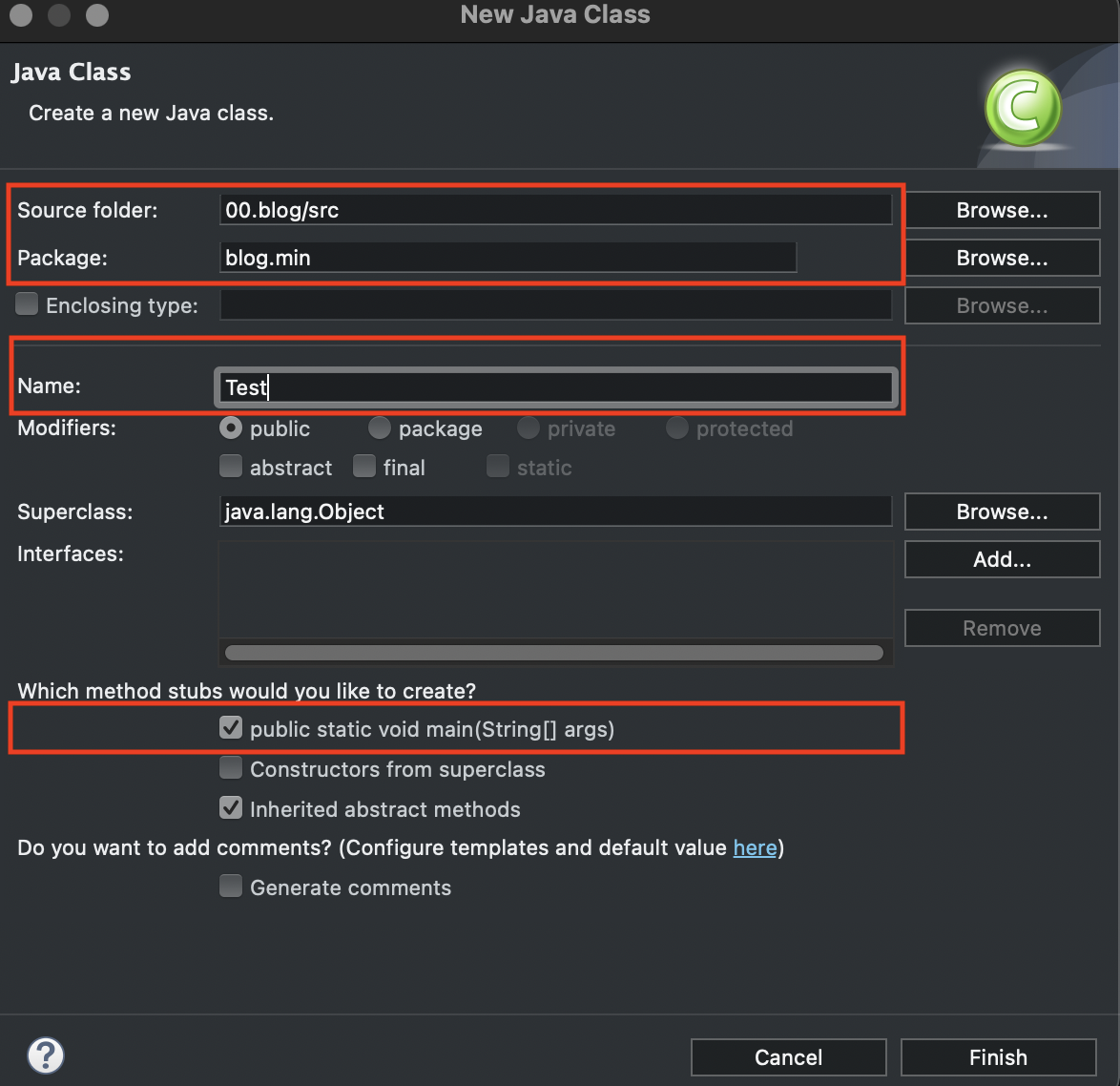 그리고 Finish 로 생성하면