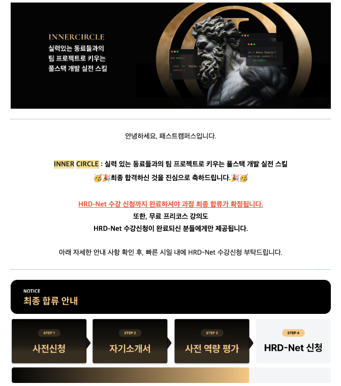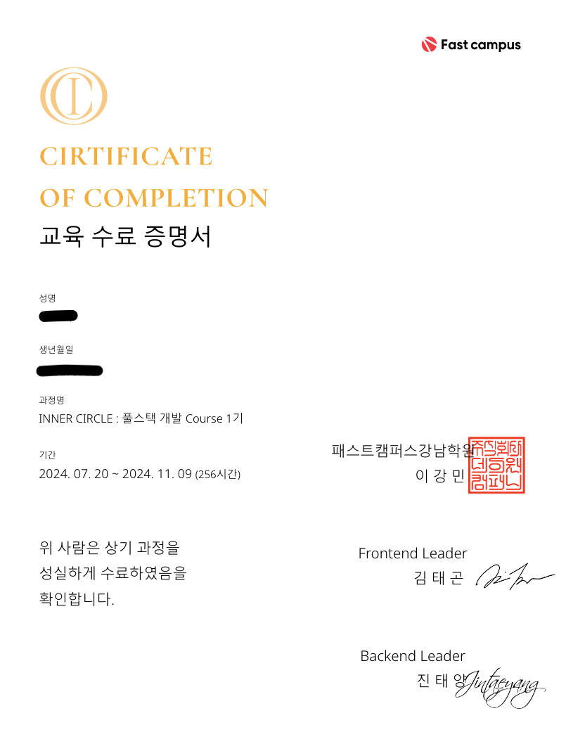 물론 좋기만 한 건 아니었다. 주4일이상 평일 저녁과 토요일엔 9-6까지 14주차가 넘는 많은 시간을 투자해야하며, 이 시간외에도 고민하고 개발하는 시간까지 생각하면 이너서클 기간동안 정말 몰두할 수 있어야한다. (그래서 여름 휴가를 못갔다 ㅠㅠ) 주말까지 투자해야하는 스케줄인데 직장인들이 대부분인 이너서클은 끝까지 버티기가 정말 쉽지 않았다. (국비교육이라 출석율도 어느정도 지켜야 했다.)