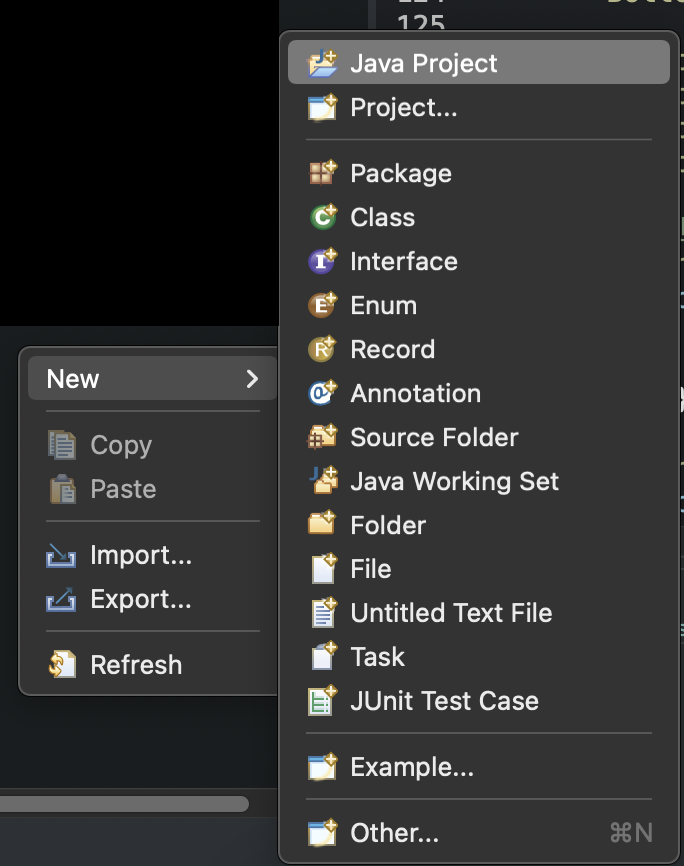 여기서 프로젝트를 생성 후 Class 파일을 만들어야 비로소 코드를 작성할 준비가 끝난겁니다.