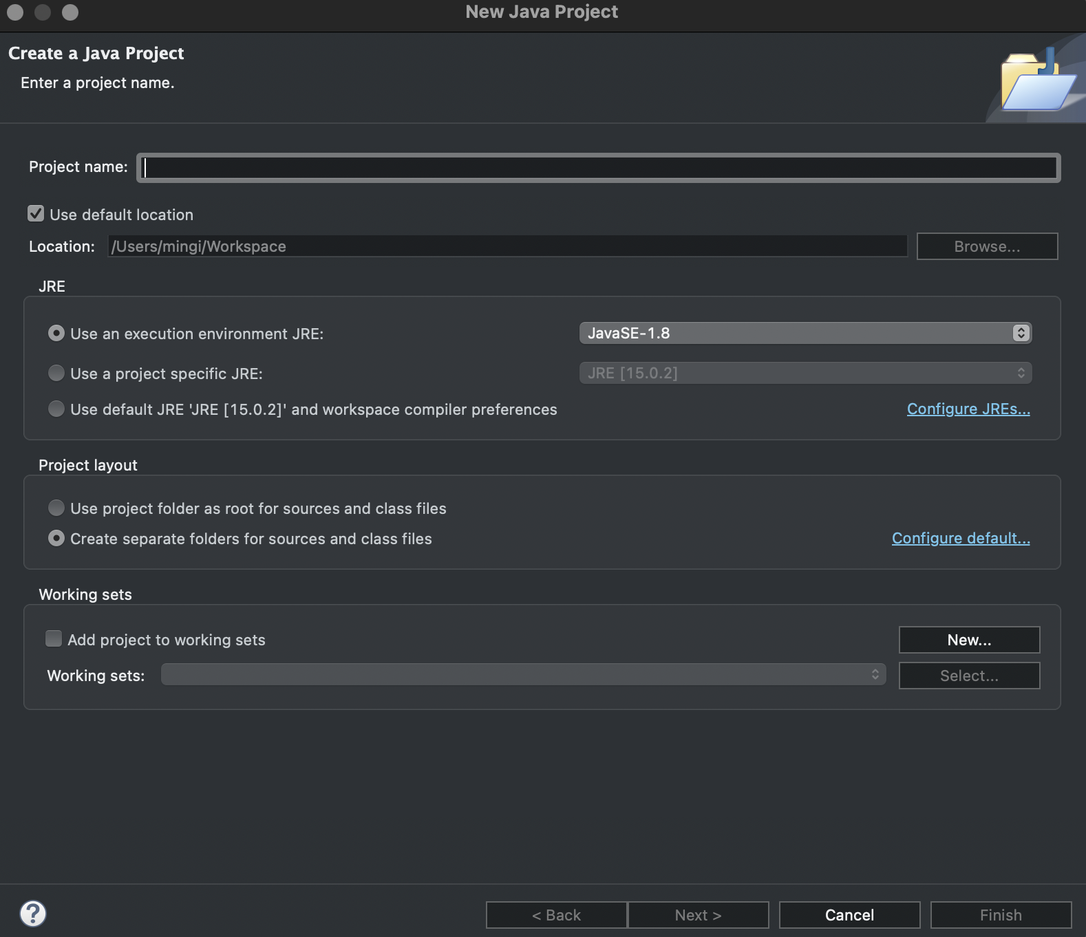 비유하자면 폴더를 생성하고 이클립스에게 이 폴더안에 내가 원하는 프로그래밍을 할거야, 하고 선언하는 겁니다.