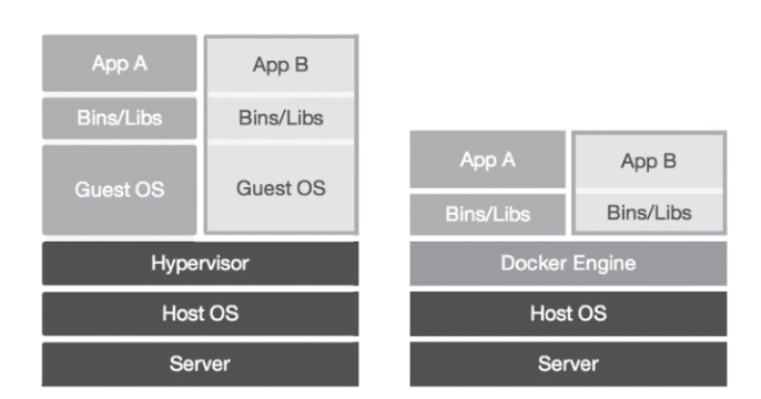 - 가상머신 : 기존의 가상화 머신들은 하이퍼바이저(hyperVisor)를 이용해 여러개의 운영체제를 하나의 호스트에서 생성해 사용하는 방식으로 각각의 운영체제들을 게스트라 하며 게스트 운영체제들은 다른 게스트들과는 독립된 공간과 자원을 할당받아 사용합니다. 다만 시스템 자원을 가상화하고 생성하는등의 관리를 하는 작업들은 하이퍼바이저의 관리를 통해 이루어지면서 성능의 손실이 발생합니다. 그리고 운영체제를 사용하기 위해 필요한 리소스들때문에 이미지의 크기가 커지며 애플리케이션으로 배포하기에 부담스럽다는 단점이 있습니다.