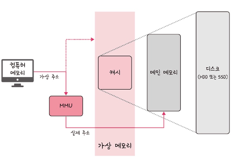 - 페이지 : 가상 메모리를 사용하는 최소 크기의 단위